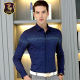 春款男士长袖衬衫丝光棉弹力修身双层领商务休闲纯色男士衬衣上班