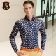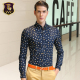 名度鸟春季新品男士长袖衬衫纯棉印花时尚休闲烫钻修身衬衣潮