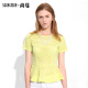 尚蔓夏装新款短袖T恤女圆领修身打底衫荷叶边网底斜条纹衫