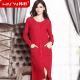 韩彩长袖睡裙女纯棉薄款宽松中长款红色蕾丝边时尚连体睡衣家居服