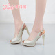 卓诗尼2016夏季新款正品女鞋高跟鱼嘴金属亮片细跟凉鞋162134070