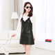 2017春秋冬装新款蕾丝修身吊带连衣裙外搭中长款PU皮背带裙皮裙女