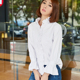 2017春装新款修身显瘦立领白衬衫韩版花边装饰喇叭袖休闲衬衣女