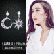 耳环925纯银针韩国气质耳坠个性不对称星月耳环夸张纯银大耳钉女