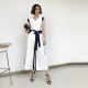 2017夏季新款中长款假两件套不规则时尚系带裙子条纹修身连衣裙女