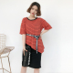 2017夏季新款圆领字母挂绳百搭宽松套头中长款上衣时尚短袖T恤潮