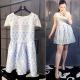 现货@加肥加大码女装胖mm春装重工刺绣提花名媛收腰A字打底连衣裙