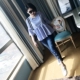 大码女装胖mm可爱娃娃衫+弹力绣花加肥加大码牛仔九分裤两件套装