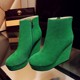 【天天特价】欧美新款磨砂牛皮高跟系带女短靴坡跟裸靴休闲马丁靴