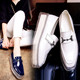 17年新款真皮单鞋舒适粗跟方头百搭休闲女鞋白色OL办公鞋扣件潮鞋