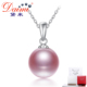 黛米珠宝 灵韵 白色粉紫色 强光正圆淡水珍珠吊坠项链女925银正品