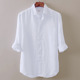 夏季防晒白色清新小翻领长袖纯亚麻衬衫男士休闲修身棉麻衬衣男装