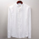 清爽透气白色小立领亚麻衬衫男休闲柔软长袖修身小清新棉麻衬衣男