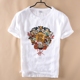 日系印花清新短袖亚麻T恤男士休闲白色薄款圆领宽松棉麻男t恤衫潮