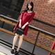 宝宝狮子新款百搭收腰显瘦荷叶边翻领长袖印花连衣裙打底裙L1822