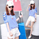 限时100件 8.8折抢购2017春夏新款拼色拼接休闲彩条短袖T恤女上衣