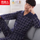 南极人纯棉睡衣男士春秋季长袖长裤简约休闲格子加大码男式家居服
