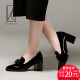 卡卡多单鞋女鞋 33/34小码 中跟深口高跟鞋粗跟女皮鞋圆头春秋鞋