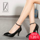 卡卡多单鞋新款粗跟真皮浅口时尚尖头一字扣高跟鞋女皮鞋女鞋夏