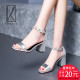 露趾2017女凉鞋粗跟夏季新款高跟水钻花朵百搭一字带真皮中跟女鞋