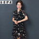 2017夏季新款圆领短袖中长款连衣裙雪纺纱复古印花旗袍款女裙显瘦