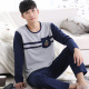 全棉男睡衣春秋纯棉长袖青年套头圆领中年加大码冬家居服韩版套装