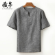 藏帛亚麻唐装男短袖t恤夏季中老年休闲衬衫中国风中式 加肥加大