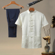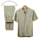 藏帛夏天唐装男套装中老年人中国风男装短袖中年棉麻休闲居士服男