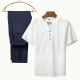 藏帛亚麻套装男夏季中老年宽松薄款复古唐装男中国风男装t恤 短袖