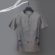 藏帛唐装男亚麻短袖衬衫复古休闲中青年圆领衬衣涂鸦宽松夏季上衣