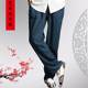 驰誉秋冬休闲裤男宽松长裤哈伦裤亚麻裤男中国风男装棉麻裤子男