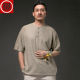 驰誉秋季中国风男士亚麻休闲衬衫唐装男士盘扣长袖男汉服中式男装