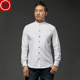 驰誉中国风棉麻立领衬衫 男士中式盘扣唐装修身长袖打底衬衣 男