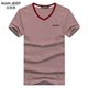夏季NIAN JEEP男装短袖t恤条纹宽松休闲V领上衣服大码宽松半袖男