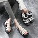 凉鞋女夏2017新款平跟平底松糕罗马女鞋百搭一字带厚底学生沙滩鞋