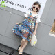 女童套装夏装2017新款大童夏季儿童中长款印花短袖连衣裙两件套裙