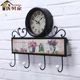 田园铁艺壁挂钟 欧式创意静音时钟 复古石英钟个性家居装饰挂钩钟
