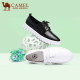 Camel/骆驼女鞋 真皮品质春新款小皮鞋 圆头平跟系带单鞋小白鞋