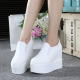 潮春秋日韩2017新款休闲舒适厚底内增坡跟单鞋女松糕底超高跟白色