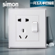 西蒙开关插座面板西蒙56系列雅白色五孔插座加开关V51086(银边)