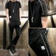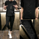 2017夏季欧美潮牌黑套装男短袖t恤哈伦长裤两件套修身运动装一套