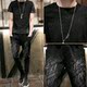 2017夏天新款休闲套装男潮流时尚做旧两件套短袖t恤束脚长裤一套