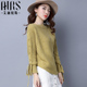 艾澜绒斯2016秋冬新款女装 圆领长袖绣花针织打底衫套头毛衣女