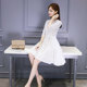 2017夏季韩国新款V领高腰镂空蕾丝连衣裙女气质修身中长款A字裙潮