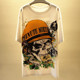2017新韩版夏骷髅头印花T恤女款短袖恤衫中长款宽松显瘦插肩体恤