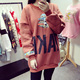 粉色可爱卡通卫衣女插肩袖加厚加绒中长款圆领字母套头长袖绒衫潮