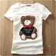 春季磨毛短袖勾绒卡通蝴蝶结毛绒小熊厚款半袖圆领女款t恤打底衫