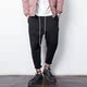 缪先生春季新款日系复古简约修身纯色小脚长裤男休闲百搭九分裤潮