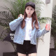 舒雪儿宽松显瘦假两件拼接长袖学生牛仔衬衫女春夏韩版漏肩上衣