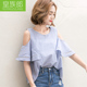 条纹T恤女短袖上衣服夏装2017新款韩版百搭露肩中长袖柔美雪纺衫